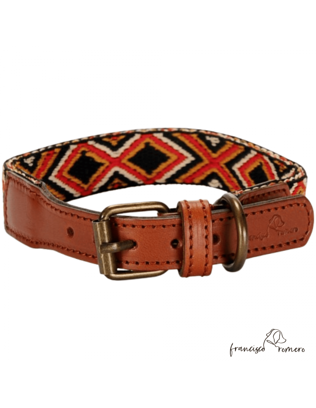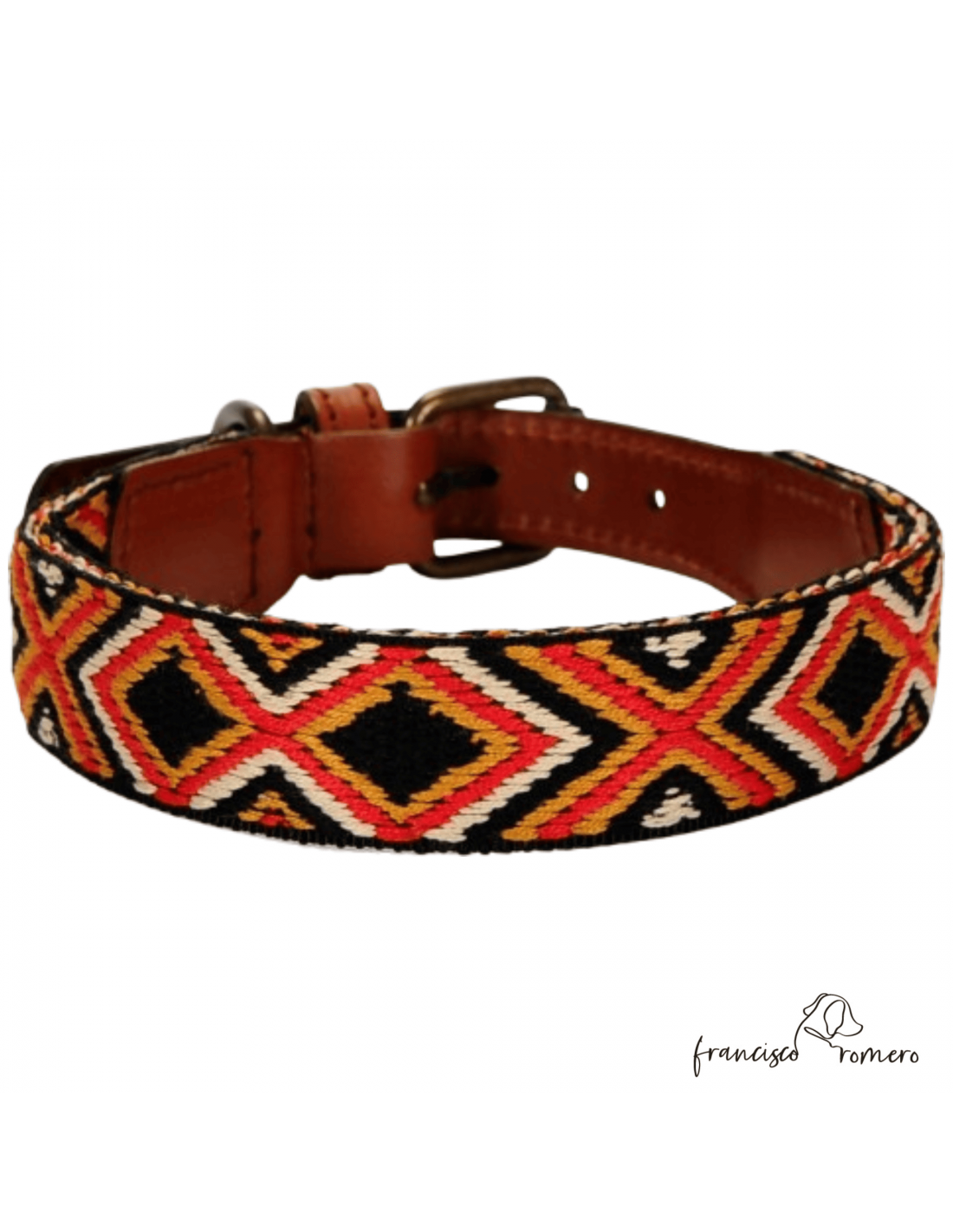 Collares fabricados en Piel combinada con una cinta étnica de poliamida.