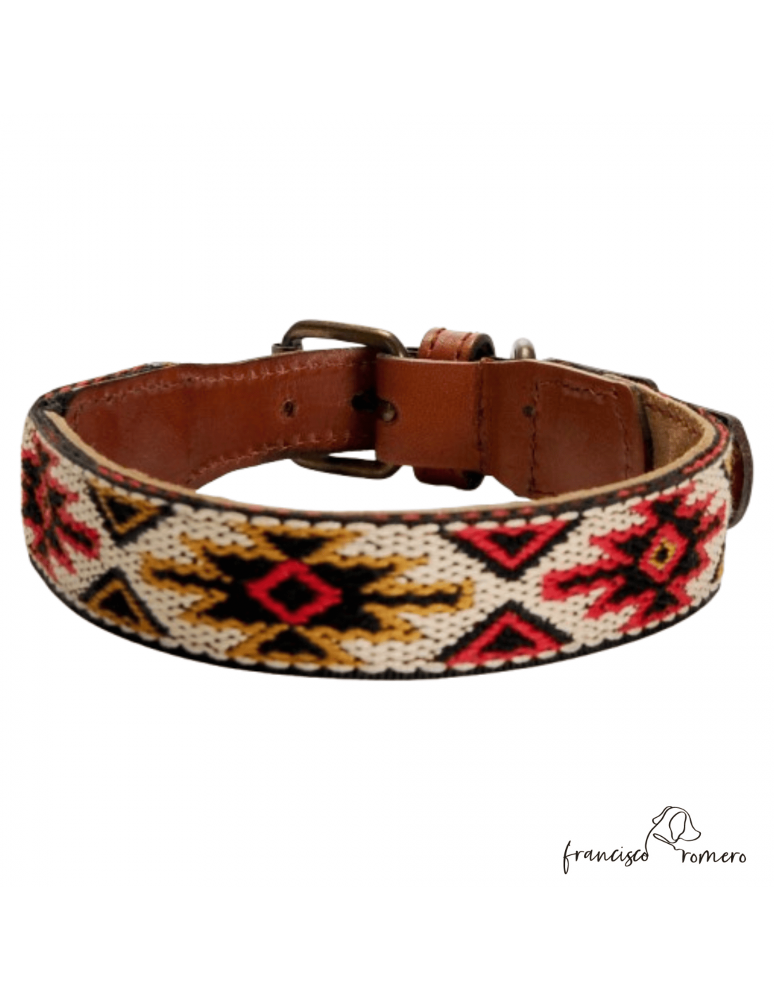 Collares fabricados en Piel combinada con una cinta étnica de poliamida.