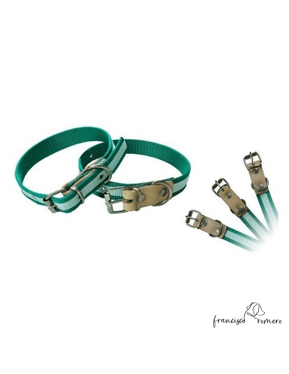 - Collar fabricado artesanalmente con nylon y piel de vaca de primera calidad.