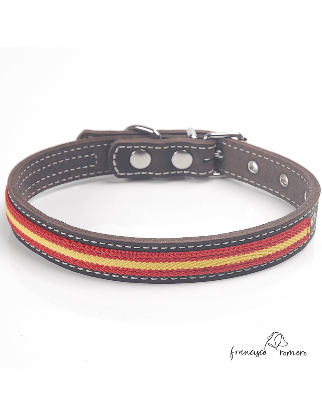 Collar piel vaquetilla bandera España hebilla rulo Marrón