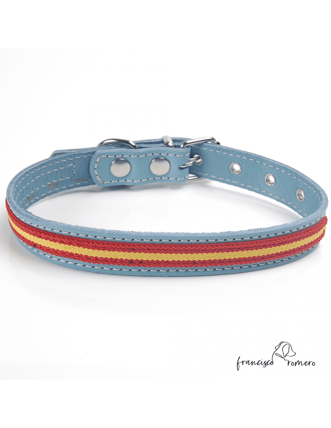Collar piel vaquetilla bandera España hebilla rulo Celeste