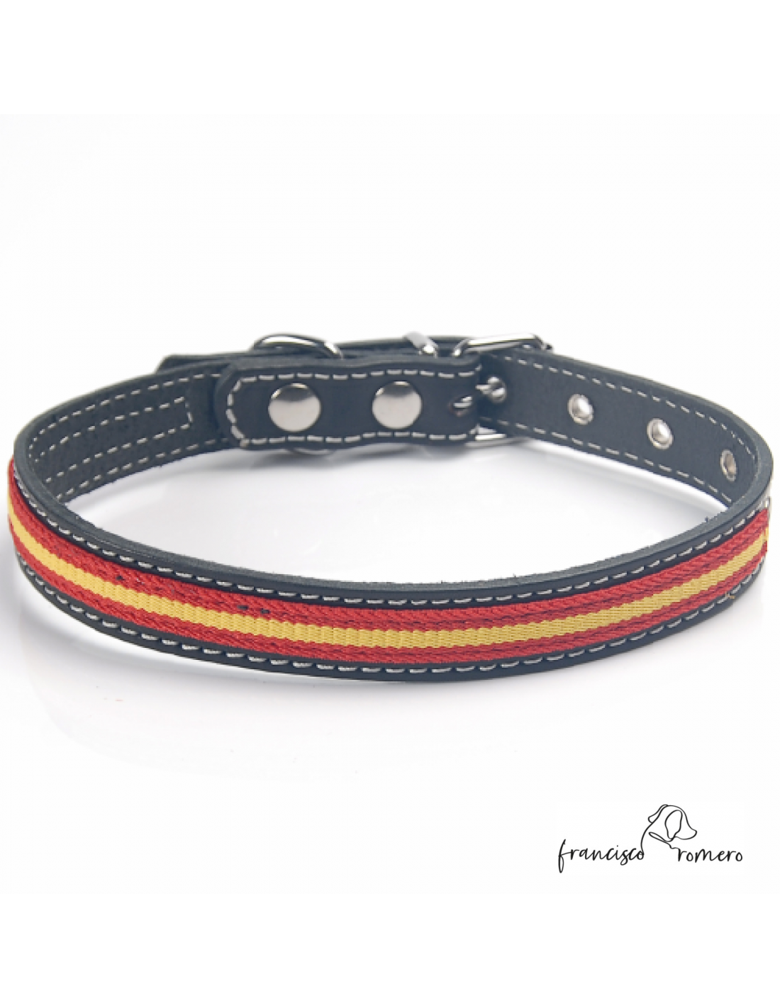 Collar piel vaquetilla bandera España hebilla rulo Negro