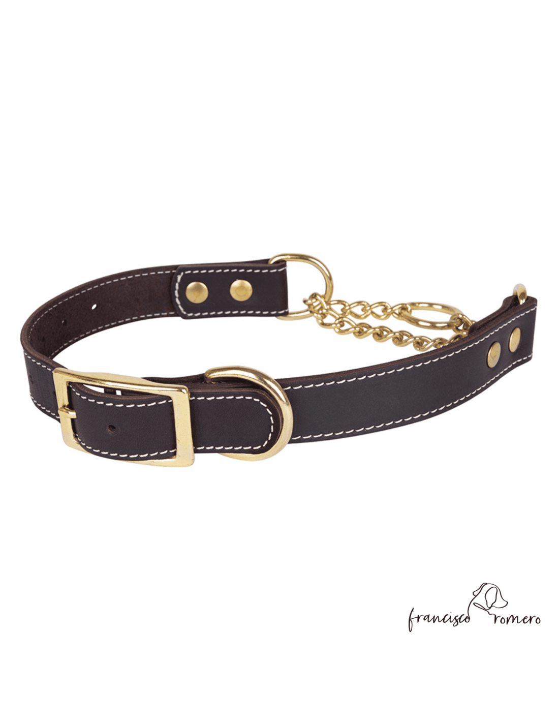 Collar Corrector Piel Cadena de Latón Grande Marrón
