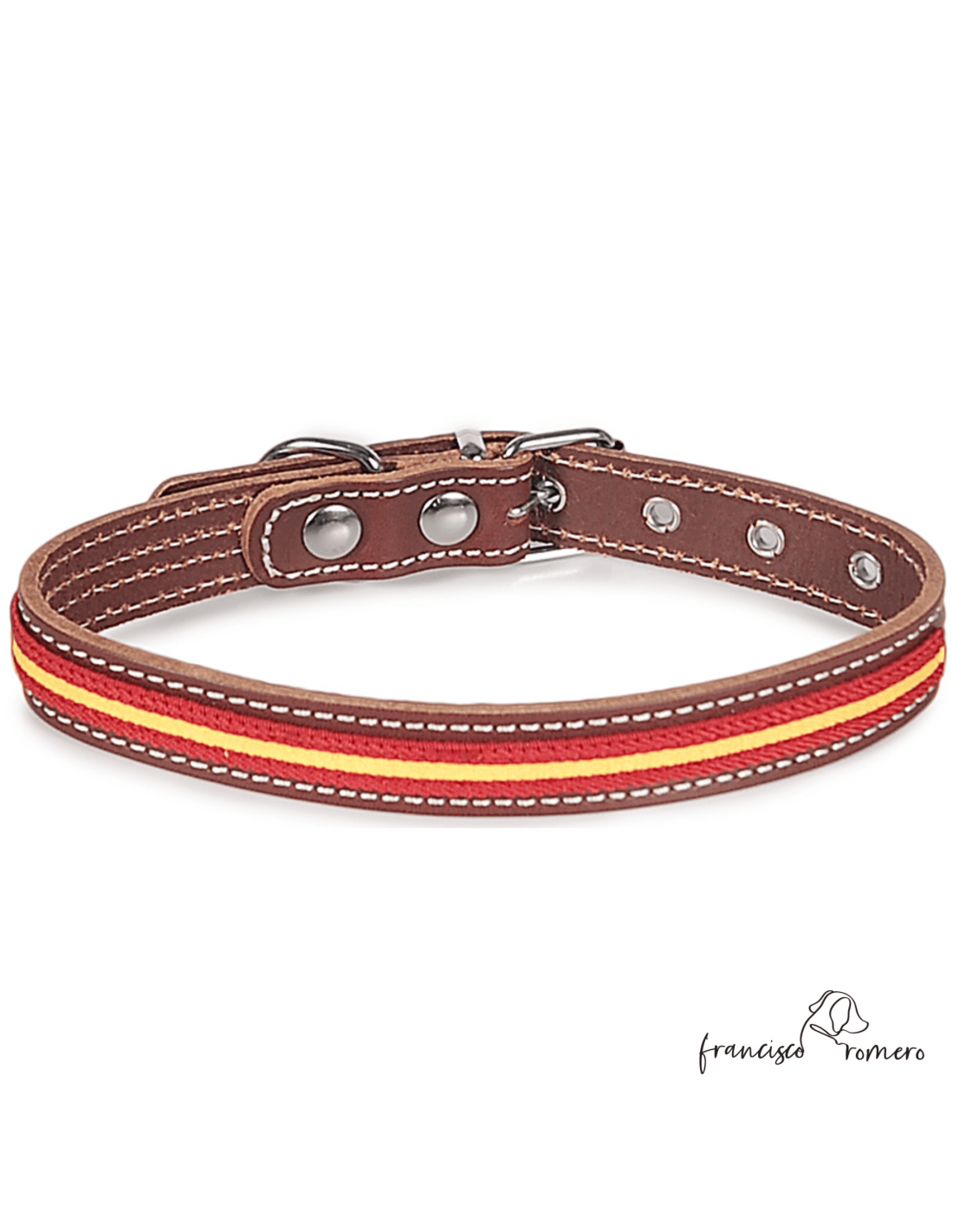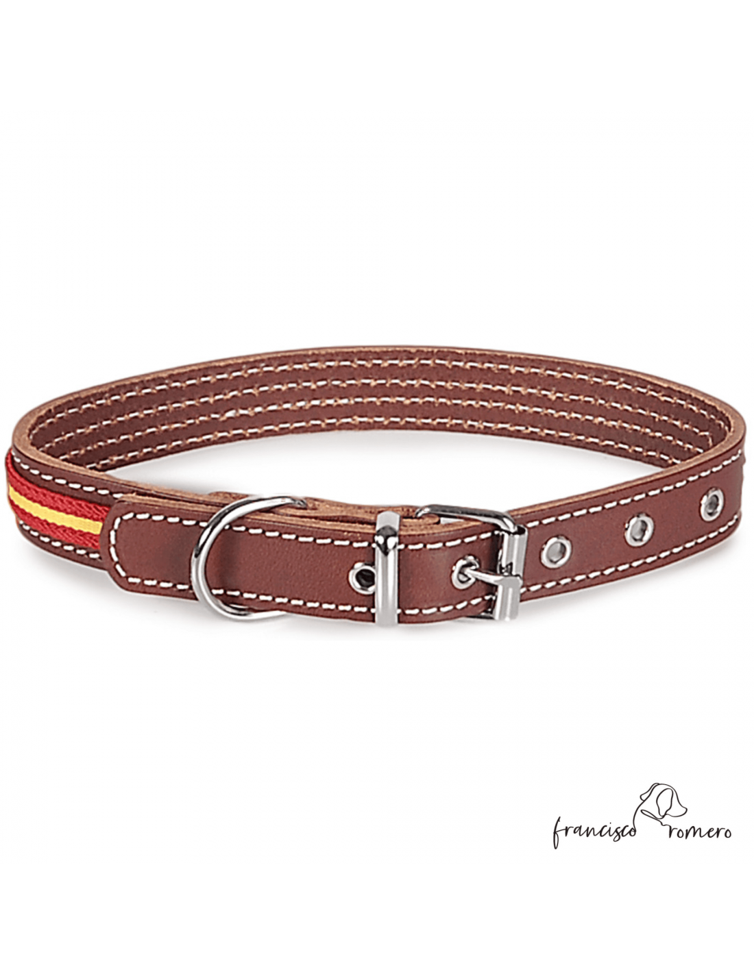 Collar piel vaquetilla bandera España hebilla rulo Chocolate