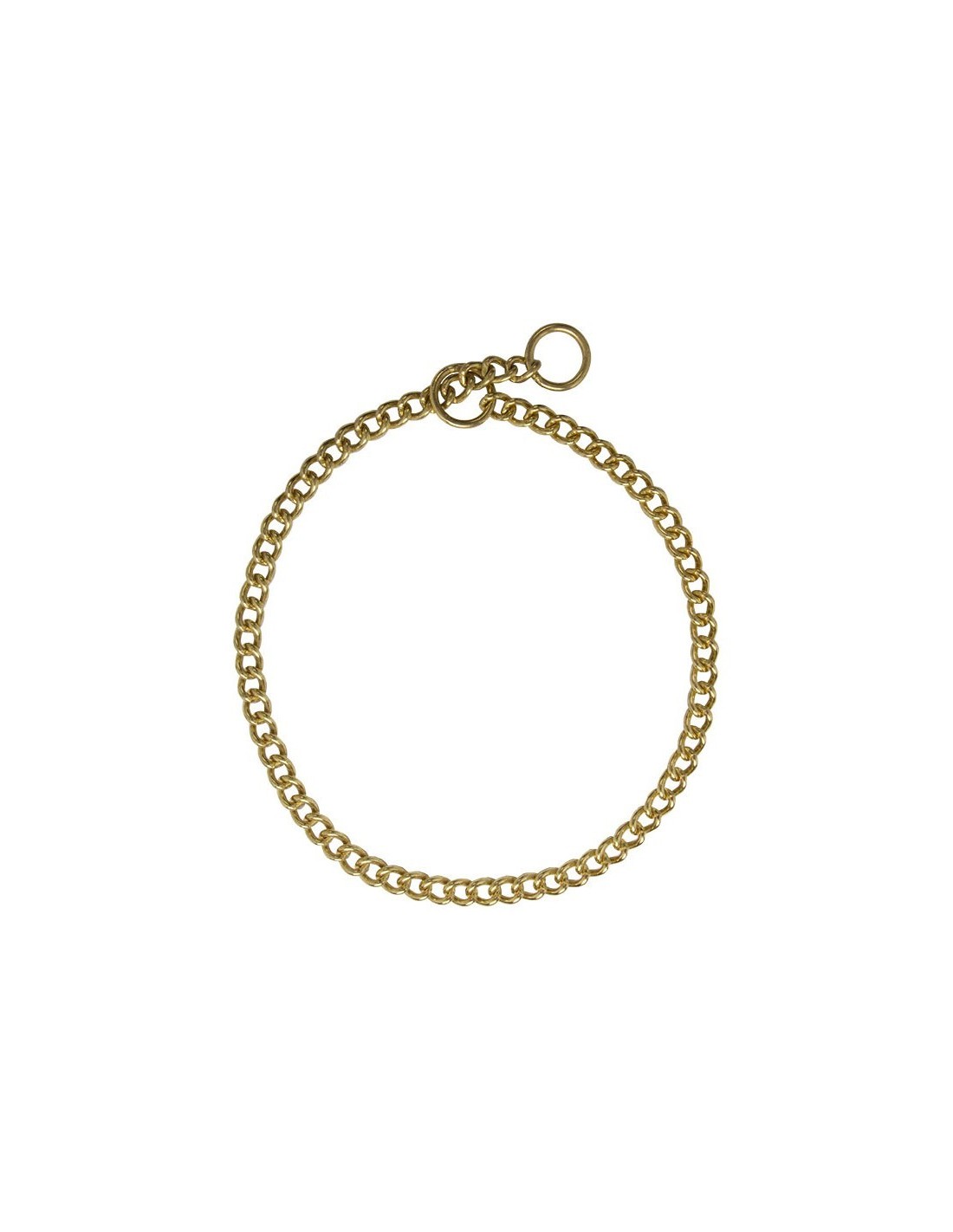 Collar metálico para perro, fabricado con eslabón pequeño de latón, el cual ofrece elegancia a la vez que resistencia. Se puede utilizar para adiestramiento o para paseo. Collar ideal para todo tipo de razas. Grosor del metal 3mm a 4mm.