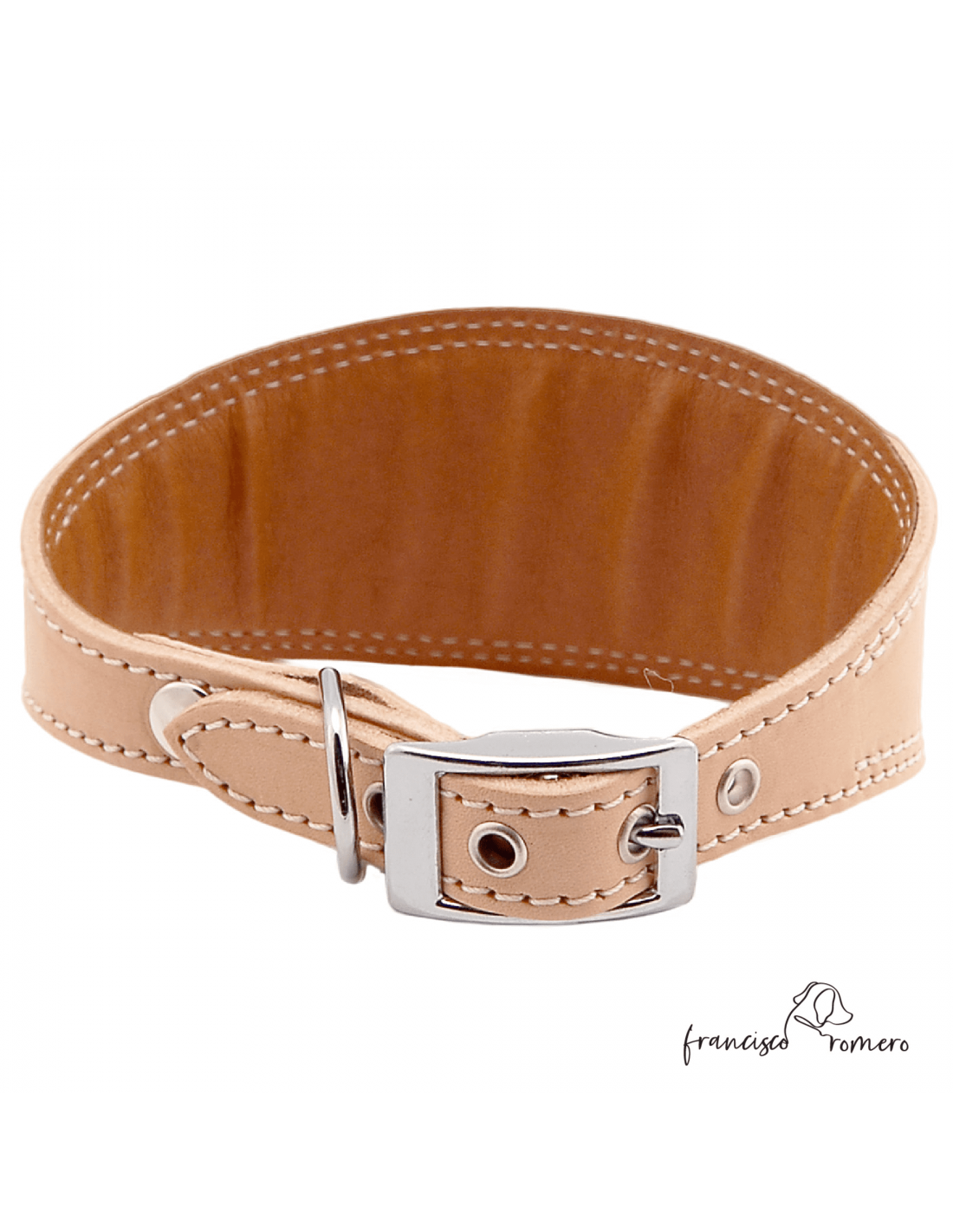 Collar para galgo fabricado en piel de vaca con forro interior acolchado y herrajes de níquel.