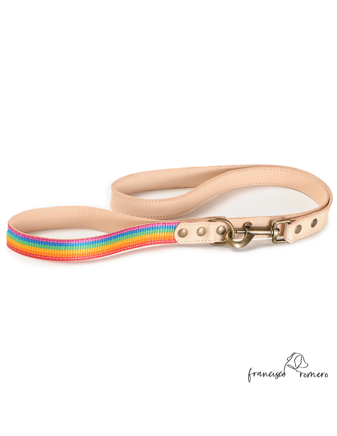 Correa fabricada en Piel Vaquetilla con arco iris de nylon.