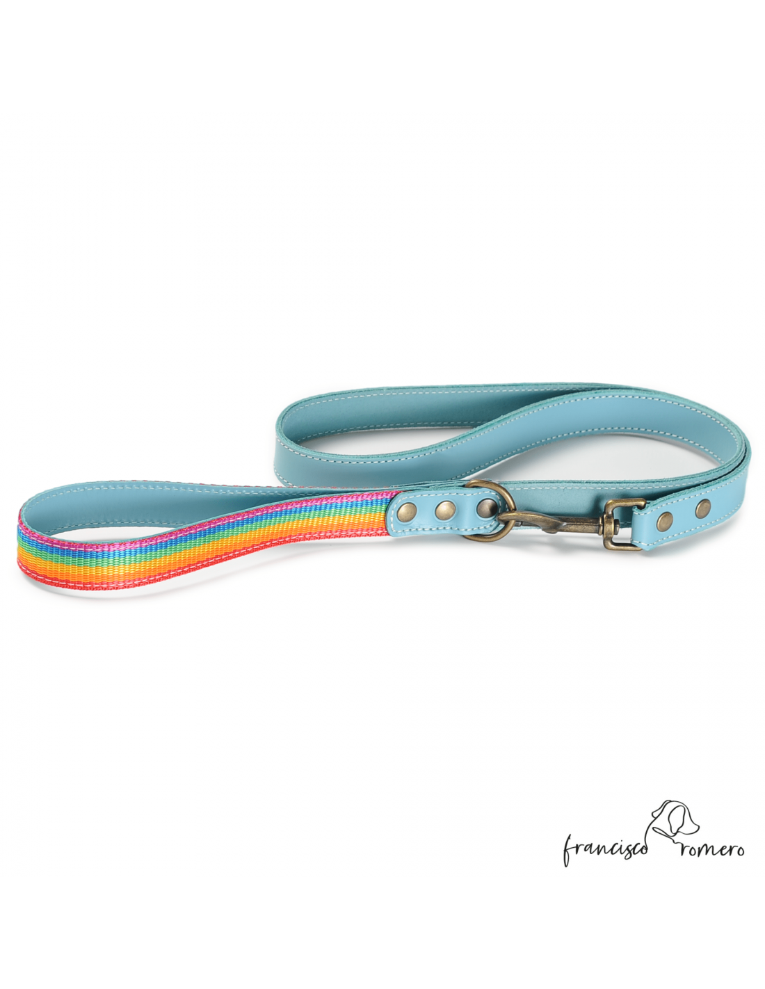 Correa fabricada en Piel Vaquetilla con arco iris de nylon.