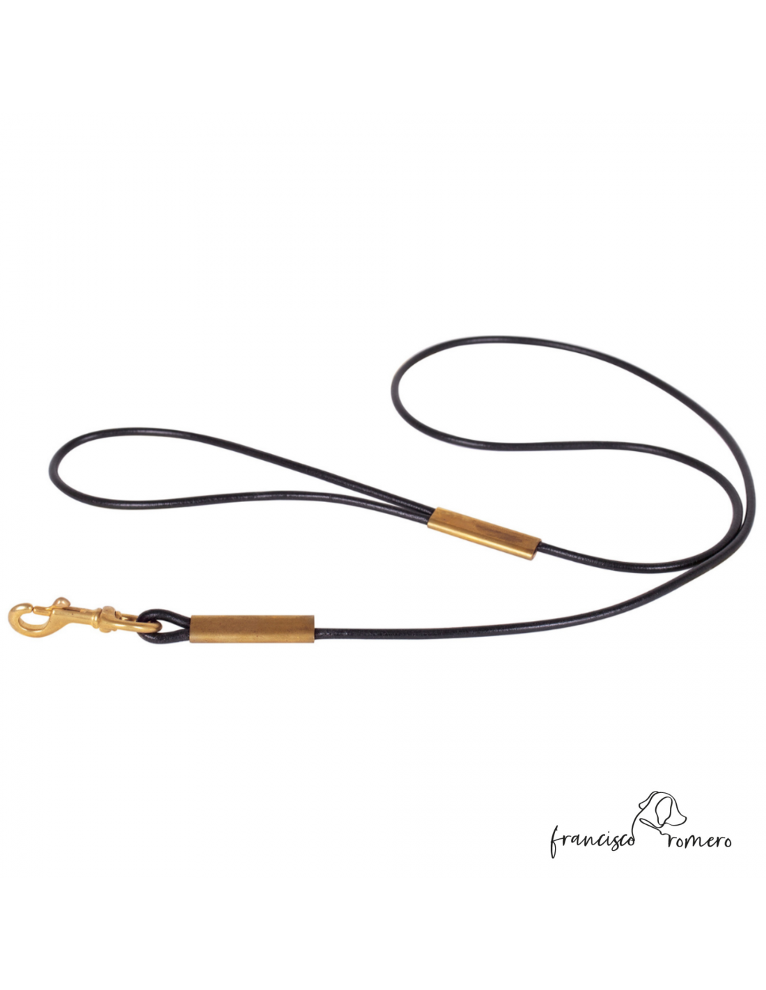 Correa Cordón Redondo 4 mm Piel Mosquetón Latón Negra